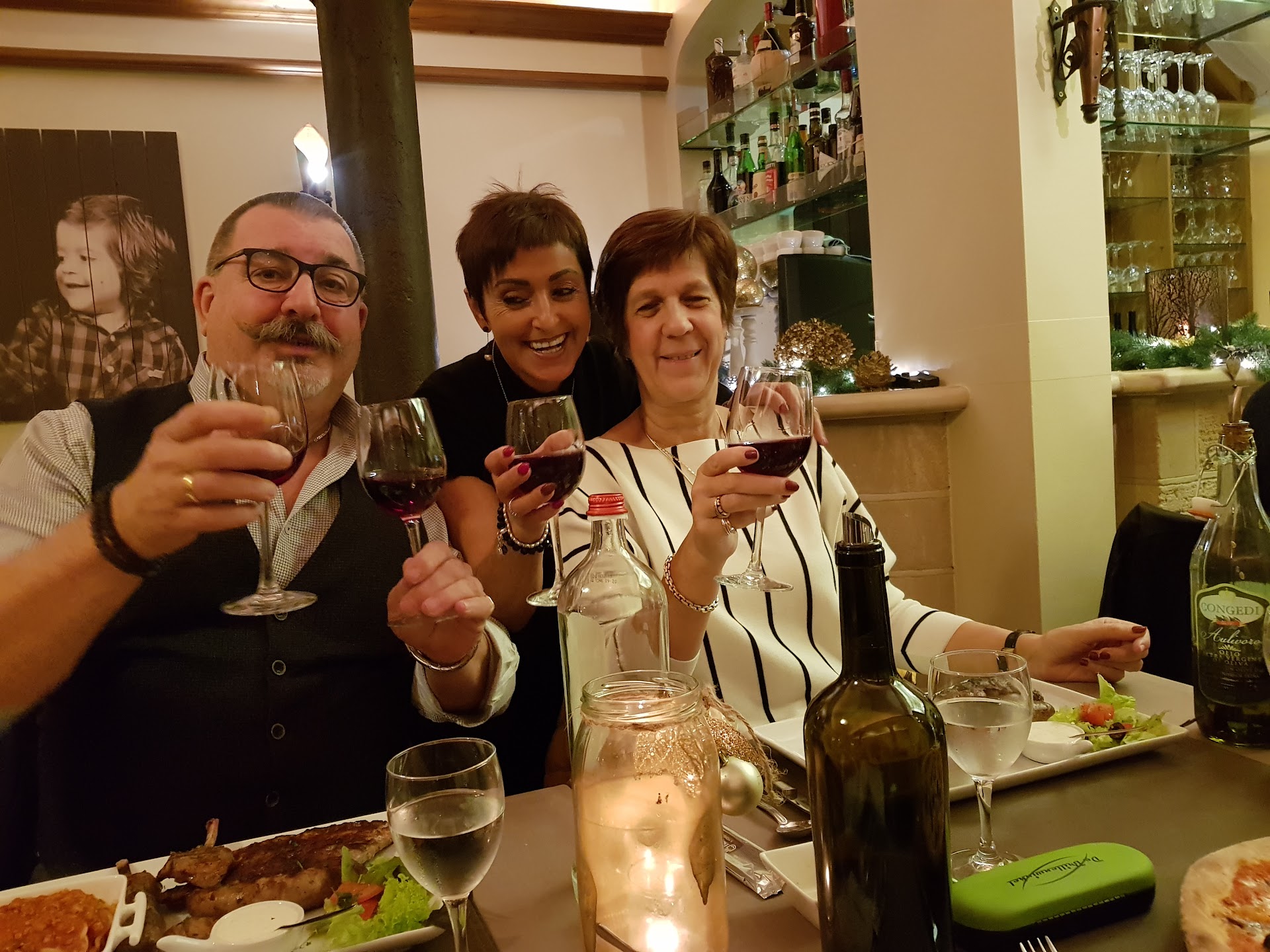 Read moreNa lang wikken en wegen en onderhandelen waren we het eens: we gingen naar de pizzeria. Aldaar kregen we een tafel en konden we bestellen. Ieder maakte hun keuze, drankje erbij, knoflookbroodje vooraf. Toen dat op was (drankjes nog niet) kwam bericht uit de keuken: de pizza's waren op! Tsja... Natuurlijk was er nog keuze uit pasta en antipasti, maar we konden uit teleurstelling niet kiezen en zijn bij de overburen gaan eten: schier oneindige keuze uit (o.a.) pizza's! Toch nog een...