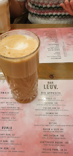 Read moreThis is my 2nd visit to Bar Leuv and it was just as good as the 1st. Lovely, attentive staff and a great brunch. I tried out the Bacon and Eggs on a Waffle base. The bacon was perfectly done and the eggs came as an omelette, rather than sunny-side up as expected. Two sunny-side up eggs may have worked better with the bacon and waffle, but the omelette was quite delicious as well. The standout though was definitely the Masala Chai latte! Perfectly balanced spices, the right amount of cardamom, though not too sharp with the tea. The perfect drink for a rainy Sunday...