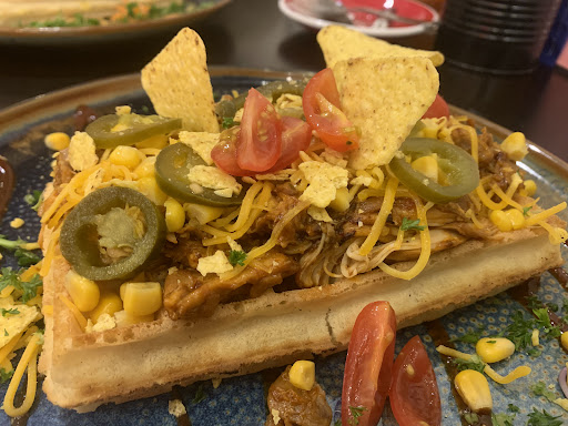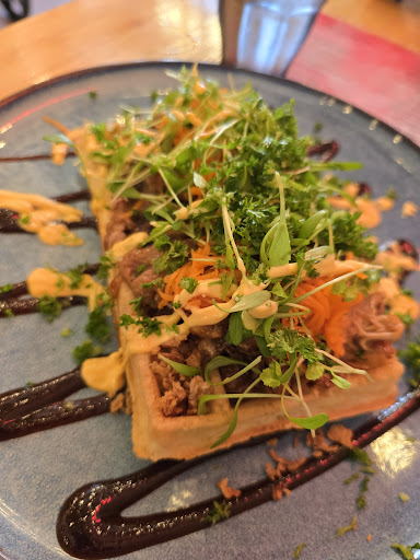 Read moreIt was a very nice experience to eat here, even though it is somewhat on the expensive side. We had the waffles with bbq chicken (€14) and pulled pork (€14,50), two cappuccino’s (€6,40), an earl grey tea (€3,20) and a brownie (€2,50 for a quite small piece). The total was €40,60. This is somewhat out of proportion compared to other similar places. (e.g. a bowl of Ramen soup at Susuru ramen costs only €13,50 and you have eaten more) The bbq sauce in the pulled chicken overwhelms as does the plum sauce in the pulled pork, that is quite...