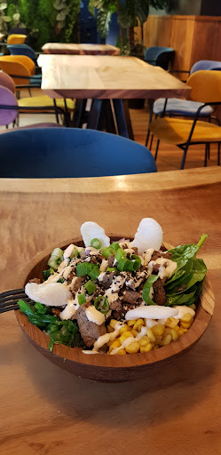 First off, the decor of this place is next level. All the (fake) greenery and coconut style lampshades make it feel so tropical. There's plenty of seating and the chairs are comfy. Only thing I noticed when I walked in is that quite a few tables hadn't been cleared, yet staff weren't busy making food at the time either..