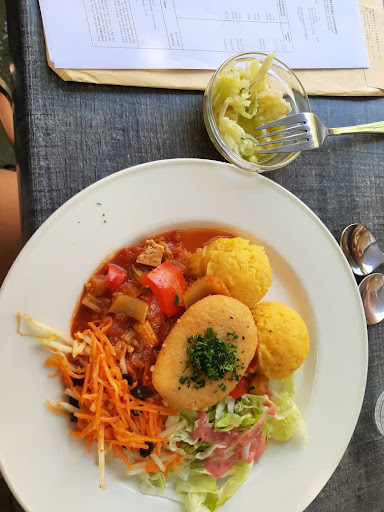 Visiting for the first time was a strange experience: we had booked a table by phone, reservation was confirmed, only to arrive at the restaurant and be completely ignored, with no instructions available. Eventually we copied what others were doing: pick a free table, take cutlery and a small salad from the counter, sit down and wait. After a while a preoccupied and impatient waitress came to take our order, quickly left again when we asked too many questions about the very vague menu, then returned after a longer while to finish her task, all without a single smile, leaving us to wonder if we had made the right choice in coming here or should look for another place to go to. The mood brightened when food was served: very generous portions of tasty and wholesome dishes of comfort food, every bite telling us that it had been worth the waiting and wondering. There wasn't much time to savour the experience though, with the restaurant (not just the kitchen as I was expecting) closing at 8.30pm and guests being firmly ushered out. If and when I return in the future I'll be sure to come mentally prepared and repeat only the nice part of the evening. Word...
