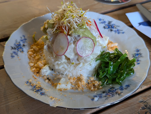 Read moreI ordered Forel fish and a few side dishes and liked a lot. I am not a vegetarian or veganist, but the menu was certainly tailored to the growing demands in this sense. Loved the open sky terrace, and very friendly staff. The only dowside, not sure how that can be resolved, was about finding parking space nearby. It's a crowded place, where many customers look for parking. I can only recommend to approach this place by foot, bike or step. Cobble stones in this area do not make this place easily accessible for...
