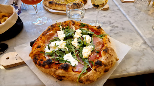 The pizzas themselves are nothing short of incredible. The dough is well-seasoned, crispy but at the same time just chewy enough. This is then topped with a creamy passata, oozy straciatella and lucatella ham bursting with flavor. Add a glass of wine or a beer from Salento and you're set for success.