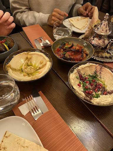 Read moreOnze referentie voor Syrisch eten is Nour in de Javastraat in Amsterdam. Echt alles is daar veel beter dan bij Roots in Leuven. Wij hadden voor de lunch dolma's, moutabal, tzatziki, sambousek en zahra. Deze kosten los per stuk 8,50. Roots biedt een sharing arrangement van 5 warme en koude mezzes voor 44,00. Je bent dan meer kwijt dan wanneer je ze per stuk besteld: 5 x 8,50 = 42,50. Heel merkwaardig. Het was allemaal van een nogal middelmatige kwaliteit. De Syrische keuken staat o.a bekend om zijn geweldige brood, dat in een steenoven (Tannour) wordt gebakken. Bij Nour bakken ze dat zelf. Het is geweldig om bij de mezzes zo'n vers warm en zeer smakelijk platbrood te krijgen. Bij Roots kopen ze een treurig slecht kant en klaar baksel voor bij de mezzes in. Roots heeft Veel goede recensies. Men heeft blijkbaar geen idee hoeveel beter dit kan.