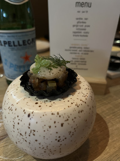 Read moreThe food was beautifully presented and made with precision. The flavours takes one on an experience and elevates even the most simple ingredients to near heavenly status. There is also a good wine selection that compliments the dishes perfectly. The service was friendly and swift, but the waiting time between dishes was exceptionally long (20min). One does need time to savour the dish before the next, but the wait here was too long. The prices are quite high for what is offered. Lastly, despite the exquisite taste of the food, do not expect to go home with a full stomach. The portions are so small that even when having the 7 course degustation, you will leave hungry. On my way home I drove past a frituur and saw a student walk out with a large pack of fries. I lamented and thought that at least one of us would not go to bed...
