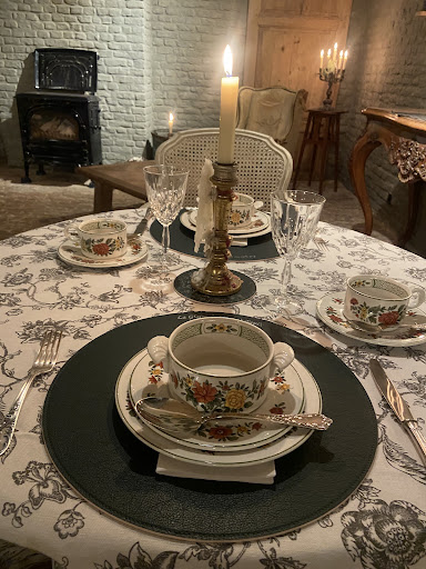 We kwamen op deze plek terecht door het verkopen van porseleinen koffieservies en borden van onze (schoon-)ouders. We waren nieuwsgierig naar de gerechten die wekelijks gepost werden en de borden deden schitteren. Groot was onze verrassing dan ook dat de gastheer ons meer dan verwende op deze borden, die bij elk gerecht prachtig versierd waren met heerlijke gerechten. Van voorgerecht tot nagerecht hebben we genoten van een culinaire hoogstaande avond. De vriendelijke gastheer en gastvrouw verwenden ons alom. Door hun passie voor de 17de eeuw blinken ze uit in originaliteit. Ik wil hier nog niet teveel verklappen, maar de gastheer wist ons alleszins te boeien met zijn menu, weetjes, curiositeiten … Ook het ontbijt was er ééntje dat nu op nummer één komt te staan in onze top 10. Verfijnd, op en top verzorgd en super lekker! De gastheer zijn roots liggen in West-Vlaanderen, dus zeggen we het graag in zijn dialect: “Wij keren zeker...