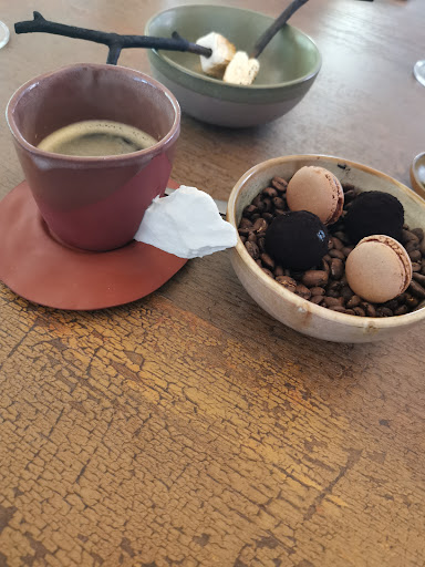 Le service, géré par des cuisiniers qui assumaient également le rôle de serveurs, s'est avéré être une véritable catastrophe. Malgré l'appréciable convivialité, il est essentiel de souligner que nous étions dans un restaurant étoilé, et non dans un lieu de détente informel. Le sommelier, arborant une attitude hautaine et condescendante, se déplaçait dans le restaurant avec une arrogance déplacée. Les plaisanteries lancées à ses collègues, bien que teintées d'humour, ne semblaient pas appropriées.