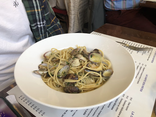 Read morePetite carte de pates classiques, pas trop grand choix! si comme moi vous aimez des assiettes colorées de légumes stylz nouvellz cuisine, surprenantes cet endroit n' est pas pour vous. Italien très tres classique! Ambiance clean et sympathique on nous a offert le verre pétillant du patron. J'ai pris un morceau de saumon il était vraiment cuit et pas du tout rosé servi seul sur l'assiette un peu perdu sans rien! a côté danq un mini bol qq feuilles de salade verte mais ( il était possible d' avoir une patate épluché cuite a l' eau du riz blanc ou de pâte) Vraiment pas inventif pour ma part... la cuisine doit surprendre le client! Il y a tellement de possibilité. Je n' y retournerai pas trop trop basic...