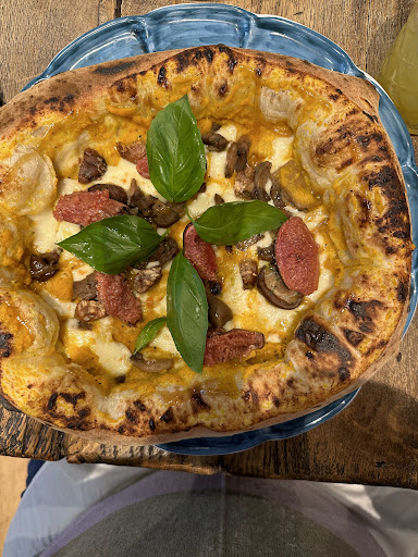 Nous avons réservé une table pour deux avec ma copine, mais à notre arrivée, nous n’étions pas sur leur liste malgré la confirmation de la réservation. Le service était très chaotique, avec des erreurs répétées : les boissons étaient commandées deux fois, et les commandes perdues revenaient sans cesse. J’étais venu tester leur pizza 'championne du monde', mais après avoir choisi ma pizza, la serveuse m’a répondu "il n'y en a plus", comme si c'était une évidence, (à 19h30 !!!) en riant, sans que ce soit indiqué nulle part. Puis, un autre serveur m’a demandé si nous avions fait notre choix à peine 15 secondes après la première serveuse… Le service était complètement débordé et peu organisé. Un autre aspect concerne la musique beaucoup beaucoup trop forte, je n'entendais pas ma compagne parler... Malgré tout, les pizzas étaient bonnes et c'est ça qu'on veut au final. Un grand potentiel, mais le service a besoin d’être amélioré.