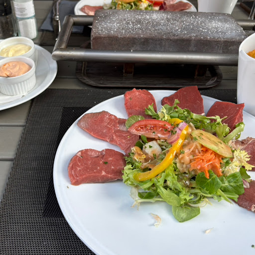 Read morePersonnel sympathique mais service un peu rapide, à peine fini, on débarrasse … nous avons pris le festin de Babette qui consiste en une entrée pierrade de poissons fruits de mer (5 morceaux), une pierrade de viandes (7-8 morceaux) et un dessert pour 37€. Gratin dauphinois en supplément sinon frites ou croquettes. Les + : Une petite salade aux lardons est offerte pendant l’apéritif, les quantités. Les - : salade en apéro, la même avec l’entrée et la même en plat légèrement agrémentée différemment, dommage qu’il n’y ait pas plus de diversité. Les viandes/fruits de mer, poissons sont bons mais pas exceptionnels. Les sauces un peu trop les mêmes. Fin de soirée le choix de dessert...