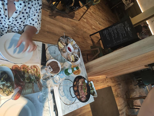 Read moreTout d'abord: la nourriture était bonne et je ne veux pas discuter cela.... MAIS MAIS MAIS.... nous étions 7, dimanche soir.... réservé... 19H: 20 minutes après notre arrivée je suis retourner au bar pour demander si on pouvait commander à boire (il n'y avait pas de cartes boissons).... après la commande on a eu les boissons (10 minutes d'écart entre 1ere boisson et la dernière)....puis on commande pour manger.... 10min après la commande on vient nous dire qu'il n'y a plus que 1 saumon (3 commandés).... pas grave: 1 bar et 1 sole à la place et on nous fait un petit geste pour le prix (apprécié).... et le serveur nous confirme qu'on nous offre un café ou thé à la fin! Ce serveur s'en va (fin de service).... on nous sert les plats: le bar avec la mauvaise sauce: pas grave, on le signale et on nous amène une autre sauce 5 min plus tard. On a attendu les pommes de terre et les frites pendant 5 minutes et le dernier steak pendant 10min qui est arrivé avec la mauvaise sauce. On demande de corriger.... le steal est reparti 5 minutes et revenu avec la bonne sauce..... la serveuse nous informe que ce steak ne sera pas compté. Ce n'est pas agréable car par politesse on veut manger ensemble.... et ce n'est pas chouette quand quelqu'un attend son assiette et le reste est servi.... On nous informe qu'il y a 3 desserts mais après en avoir commandé 2 on revient pour dire qu'il n'y a pas..... pas grave.... on commande 2 cafés et 2 thés (sur 7 personnes: on ne veut pas non plus profiter du geste commercial du 1er serveur)..... Addition: supplément frites, suppléments sauces (3), 2 cafés, 2 thés! malgré la demande de corriger la note on a du payer.... on a laissé tomber le steak (oui d'accord: mais 10min!!!! en retard plus 5 min pour corriger la sauce donc demande de frites chaudes et pas en supplément).... et café et thé offerts a été annulé par la serveuse..... en d'autres mots: un sketch et cela sera la dernière fois malgré la gentillesse du 1er...