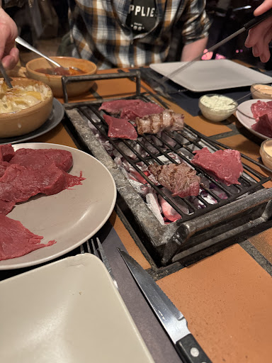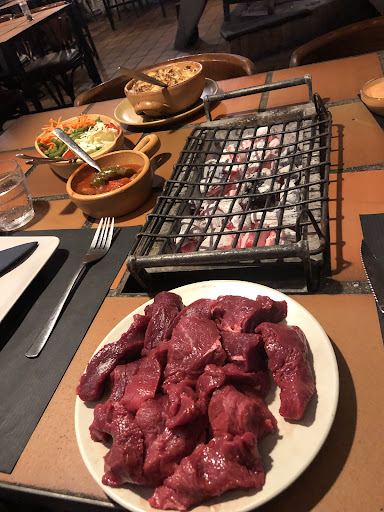 What a place!!!!! Been Here friday Last week with a friend. The Atmosphere, the smell, the Sound of the Open fire is very welcoming from the start. Very tasty local Beer on Tap, appetizers to start with. Very commited and welcoming staff. The quality of the dishes and the do-your-own bbq at your table were quite an experience already, but the more than authentic owner was the icing on the cake and the best start we could wish for at our first night Out in Liege. Chapeau...