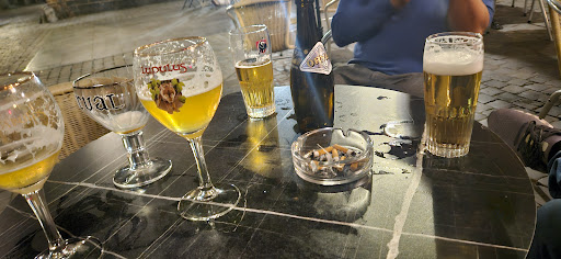 Tiny historical pub located at the heart of Outremeuse quarter. The decrepit woody interior along with the outdated candles create a charming intimate atmosphere. The terrace is located in a lively and shadowy square, heated during the cold days. Classical Belgian craft beers choice and Gouda cheese served along with dark ones, no other...