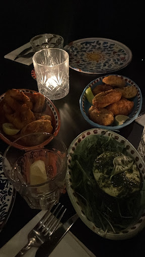 Food was below average. We ordered 6 plates and one pizza was not touched because of the chewy dough. Calamari was so small compared to before and even the pieced of lemon with it was smaller. The place was so cold and the music so loud we barely heard each other speaking.