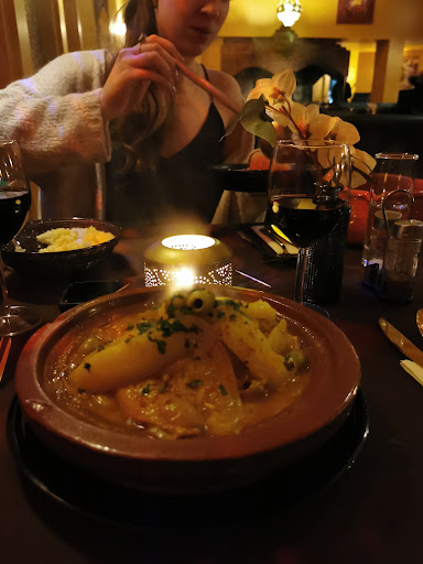Read moreNous avons été très déçu du service. 45 minutes pour qu'on daigne venir nous demander quel apéritif nous avons choisi.. Nous étions carrément ignorer. Ensuite je profite de la venue du serveur et je lui passe directement la commande du plat par la même occasion..et nous répond que cela fait 45minutes qu'un autre serveur aurait du s'occuper de nous..d'un air narcoi..30 minutes plus tard nos plats arrivent 1 couscous mijoté servi avec une viande froide sur une assiette (1 tranche de gigot)la sauce était sans goût sans aucune épices..j'ai demandé du poivre le serveur ma apporter de l harissa qu'il a mélanger dans la sauce..très étrange comportement. Mes 2 amis avait commandés de la chalkchoukka totalement sans goût. Pour couronner le tout la musique orientale était tellement forte qu'on ne savais pas se parler et cela pendant 1h45. De plus il fesait un froid glacial dans le restaurant les radiateurs étaient fermés Totalement inadmissible. En résumé nous sommes restés 2h donc 45min d'attente et 30min pour les plats sans goût. Sans 1 épice Nous avons été vraiment déçu par l'établissement,par le personnel et par la cuisine qui entre nous n'était pas très propre. Des torchons baignent dans des sceaux d'eau sale à 30 cm des cuisson. Vraiment un...
