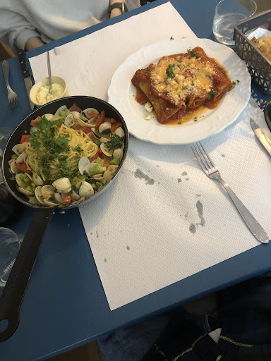 Read moreNous venons de dîner dans ce restaurant et là qu’elle ne fut pas notre surprise de découvrir la gentillesse et l’amabilité du personnel incroyable. Nous n’avions pas réservé et on nous a dit de suite qu’il y aurait de l’attente. Nous nous sommes donc installés et avons dégusté tranquillement un verre. Le serveur nous a ensuite installé assez rapidement finalement et pour s’excuser de l’attente nous a apporté un plat de la carte à partager en entrée. Je n’avais jamais vu cela et franchement cela nous a fait trop plaisir et ce plat était très très bon. Nous nous sommes laissés ensuite tenter par la suggestion un plat de moule avec linguini servies directement dans la poêle, juste génial le concept et le goût mon dieuuuuu une tuerie. Le plat était très très très copieux rarement vu ça. Mon gendre avait pris une escalope milanaise d’une taille démesurée et excellente également. Franchement je recommande ce restaurant qui est une superbe découverte gustative et humaine, rarement vu un personnel aussi sympathique. Le chef est même passé nous demander si tout allait bien en s’excusant pour...