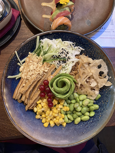 Read moreWe had a good dinner here the other day. I had wakame salad and the veggie poke bowl both of which were very good. The poke bowl which I normally find rice heavy, was laden with all the toppings so a great ratio. The portion sizes were decent, as was the price. Unfortunately the service was a little slow but the waitress who spoke english was very nice, apologetic and gave us a bowl of snacks for the wait. Would definately recommend...