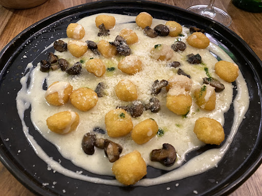 Suite a plusieurs établissements fermés ( fin de saison)nous choisissons celui ci suite aux photos de l'interieur mais a notre arrivée comme il faisait beau, nous nous decidons pour la terrasse. Il est 12h30 mais la terrasse n'etait pas mise en place et les vitres assez sales. Le serveur est toujours aussi seul mais de bonne volonté, les aperos étaient très bons mais l'assiette antipasti était très chiche.(malgré ses 18 euros)2 tranches de 3 charcuteries et une mozza mais rien comme accompagnements. Deux entrées sans veritable gout et deux plats(fades) plus une bouteille de vin ,le tout pour 139 et à l'addition même pas un limoncello offert ou une grappa , juste allez salut. Et bien merci mais pas du tout assez bien mangé...