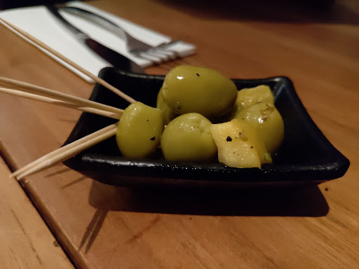 Na de drank kwam meteen een potje met olijfjes op tafel. We vroegen of we 1 pizza konden nemen als voorgerecht en dit was geen probleem dus kozen wij voor de "pizza quattro stagioni" (champignons, paprika, ui, hesp, salami, olijven, artisjok). Niet een specifieke houtoven maar deeg was oké, beleg was ook oké en de artisjokken eindelijk is niet in zoet zuur maar omgeven door olie. Deze was al geslaagd. Toen kregen we portie brood op tafel.