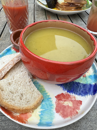 Read moreSitio ok, es el jardín de una casa con mesas y sombrillas. Calidad-precio caro, no hay servicio de mesa. Decidimos parar aquí para cenar una twizza: cocina cerrada a las 19, no lo indicaban en ningún sitio, llegamos 18.50h, así que no pudimos pedir twizza, pero si una sopa 6,5€ y un sándwich de jamón 8,5€ (no nos daban más opciones) Pedimos dos bebidas y un vaso de agua del grifo para el peque. Lo peor vino al pagar: nos habían cobrado 3 bebidas, se lo explicamos y ellos insistían que sí que tres bebidas…4,5€ por un vaso de agua del grifo…Tras discutir con ellos nos devolvieron 1,5€. Acabamos pagando 3€ por un vaso de agua del grifo que no estaba indicado. Entendemos que puedan cobrar algo pero casi lo mismo...