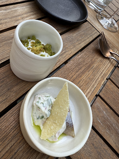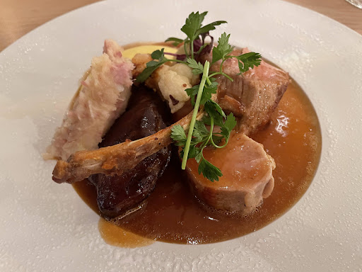 Read moreDe inrichting is modern, luchtig door de grote glaspartijen en geeft uit op het .hoogst uitnodigend terras.Wij gingen voor het verrassingsmenu, €54 lijkt me een te verantwoorden prijs, de presentatie was af, de smaken zaten goed. Anders was het met het bijhorende wijnarrangement : €18 voor 3 glaasjes wijn is er ver over. Voor die prijs, mocht er gerust eens bijgeschonken worden. Nog een paar opmerkingen : niemand stelde voor om onze jassen aan te nemen. De parking tegenover het restaurant ligt in een blauwe zone , de aanduiding er van laat te wensen over. Het zou toch maar een kleinigheid zijn, om bij het onthaal...