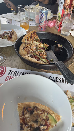 Read moreMisschien een afwijkende score ten opzichte van het gemiddelde, maar ik begrijp het concept van Pizza Hut niet. De locatie van het restaurant is wat ze is. Eigenlijk best wel Amerikaans tussen de box stores langs een grote baan, dus ergens 100% correct. Het personeel was heel vlot en vriendelijk en ik zat er eigenlijk best op m'n gemak. Fijn dat je zelf drank tapt en met zulke vragen niet telkens om hulp moet vragen. Maar het concept dus... Een "Super Supreme"-pizza voor 20,80 euro. Slik. Dan ga je toch goedkoper naar een échte Italiaan, waarvan er tig te vinden zijn over heel Vlaanderen? De Classic-bodem leek ook eerder op een brood met beleg. Veel te dik en niet krokant, hoewel alles er wel mooi gekleurd uit zag. Die te dikke korst maakte ook dat de binnenkant nog uit deeg bestond. En voor het vertrek ging ik nog even langs het toilet. Dit kost jullie de meeste sterren en dan vooral door de deuren. Daar hing een vette bruine laag op die gegarandeerd de volgende pandemie zal veroorzaken. Niet China, maar Lochristi dit keer. Ga dus toch maar naar een gewone pizzeria. Aangenamer, gezelliger, betere pizza...