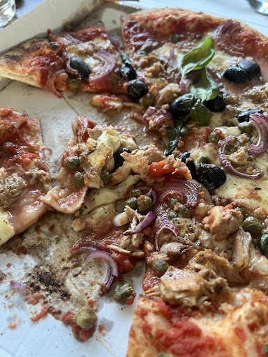 Read moreVandaag zin in pizza, netjes gebeld met de melding dat de wachttijd 25 minuten is. Mooi op tijd ter plaatse, vriendelijk onthaald door het personeel en werden gevraagd even te wachten. Na een extra 20 minuten wachten, dus 45 minuten!! de pizza in ons handen. Thuis toegekomen, pizza tonno besteld, werd het een zoektocht naar de tonijn, welgeteld 8 stukjes tonijn lagen op de pizza die dan wel bezaaid was met olijven. Pizza volledig zwart gebakken vanonder, karton waarin de pizza zat was bijna doorzichtig van de olie, vet,.. wat eruit liep. De pizza als je dit nog zo kan noemen, smaakte naar niets, viel uit elkaar, vettig, zonder tonijn, en smaakloos. Spijtige zaak om een pizza zo te serveren. Foto's ter...