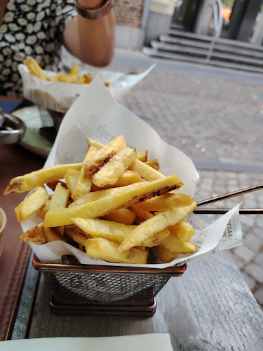 De burger kostte €23,50, wat ik behoorlijk prijzig vond voor een hamburger. Bovendien werd hij geserveerd op een houten plank met papier eronder, wat de presentatie goedkoop deed ogen – niet wat je verwacht in een restaurant van dit niveau. De burger zelf was ook erg vet, wat de ervaring niet ten goede kwam. Er zijn hamburgerzaken waar je voor minder geld veel betere burgers krijgt.