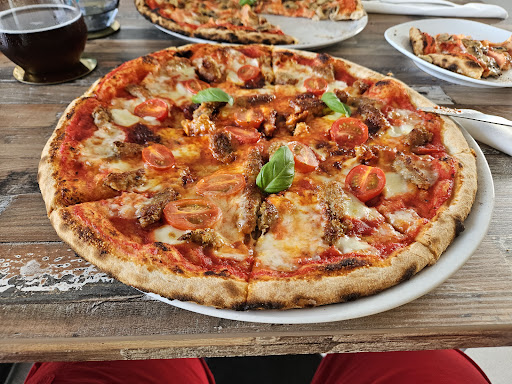 Ontzettend goede korst en een goede basissaus van tomaten. We hadden een pizza met gorgonzola en prosciutto: echt heerlijk. Goed krokante korst. Er wordt gebruik gemaakt van goede ingrediënten.