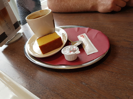 Read moreWat een slechte service. Ik kwam binnen en alle tafels waren vuil. De vrouw achter de toog had op een bestelling van 2 klanten al gezicht. Na 10 min neer te zitten gaat mijn telefoon af en bel ik gedurende 2 min. Na dat mijn telefoon gesprek gedaan is zegt de vrouw achter de kassa je mag je bestelling komen doorgeven hier. Ondertussen waren er 3 klanten voor mij. Dus ik zeg gwn en café machiato en een vlak taartje. Waarop zij antwoord u mag u beurt afwachten. Wat een schande onmiddelijk opgestaan waar ondertussen nog altijd een vuile tafel was...