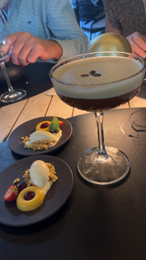 Om één of andere reden kan ik deze keer geen foto's posten. Dus laat mij beginnen met te zeggen dat de bordjes een streling voor het oog zijn! Wij waren met een gezelschap van 12 personen, geen kinderen. Voor de vlotheid van bediening namen we allemaal iets van het driegangen menu (€56pp). Alles werd gelijktijdig geserveerd en was heerlijk warm. Een amuse bouche was een zéér lekkere starter. Zowel de vol au vent, brandade van Roodbaars als kreeft als voorgerecht waren vingeraflikkend. Hierbij stak de brandade erboven uit. Hoofdgerecht werd zeer geloofd voor de skrei en eend. De contrefilet was iets moeilijker te snijden wanneer je boterzacht gewoon bent doch zéér lekker van smaak én beet. VERSE FRIETJES! Dat was dan ook de enige opmerking die ik hoorde. Zeker porties die groot genoeg zijn, zelfs voor de dames iets teveel. Het dessert is te kiezen uit kaart en waren allemaal top. Ook de soorten thee konden gesmaakt worden. Mooie kaart met wijn en bieren. Aanrader is de Irish coffee!