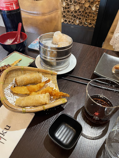 Read morePremière expérience ce vendredi 31 janvier... Nous avions réservé une table pour 2 personnes, en rentrant je demande s'il y a moyen de me mettre près d'un chauffage, la serveuse me répond que non (ok, jusque là je peux comprendre) et nous met à une table en plein courant d'air, j'ai dû manger avec ma doudoune sur les jambes! Il faisait glacial! Nous commandons des sushis : délicieux. Nous commandons les entrées frites (nems, tempura...): délicieux Ensuite arrive le tataki (qq chose comme ça): horrible... Après, voici les brochettes de scampis a l'ail alors là... une vraie blague, je pense qu'elles ont été trempées dans du Boursin fondu, ça n'avait même pas le goût d'ail... Ensuite nous commandons les plats: Canard 40 fois trop cuit Poulpe ça passe Poulet caramel super sec Boeuf à l'ail, je n'ai pas trouvé l'ail Les nouilles et les Udon n'avaient pas de goût Les courgettes (comme beaucoup d'autres plats précités) étaient remplies d'oignons rouges (ce n'est indiqué nul part). Tout était beaucoup trop cuit et manquait de saveur, de préparation... Évidemment, nos plats sont repartis vides parce que si on gaspille, c'est 2€ de supplément par sushi et 3€ PAR PLAT !!!! Pour le dessert, n'ayez plus trop faim car le ''à volonté'' est limité à 2 par personne et les mochis sont à 1,50€ pièce 😂