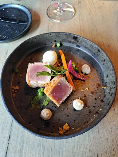 Read moreNous avons passé un moment délicieux en soirée, à 4 personnes. Dès l'accueil, les attentions sont chaleureuses, et l'ambiance du lieu l'est tout autant. Le service, assuré par la patronne, est soigné. Elle distille toute la passion qui l'anime avec une délicatesse et un bel esprit d'à-propos, rendant chaque présentation de plat captivante. Le Chef fait preuve d'une superbe créativité et les assiettes sont à chaque fois découverte et délectation. Le Chef qui prend le temps après son service de se rendre à chaque table avec discrétion, mais néanmoins sympathie sincère. L'occasion pour nous de passer, avec son épouse et lui, un très bon moment où ils ont généreusement partagé leur savoir culinaire et gustatif. Que du plaisir. Nous...