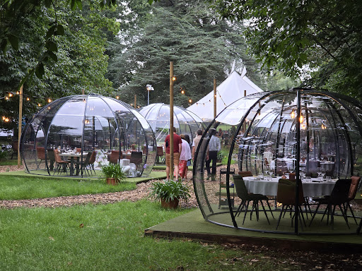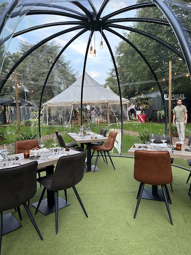 Eten gebeurd letterlijk in een bubbel, aan de hand van hoe talrijk je gezelschap is of hoeveel andere reservaties er zijn, heb je al dan niet een privé bubbel. Je begint met een drankje (ruim aanbod op de kaart) in een grote, mooi versierde tent. Dan word je naar de bubbel begeleidt en vanaf dan word je culinair verwend tot je vertrekt. Het eten is verfijnd, lekker en tot in de puntjes afgewerkt. De bediening is vriendelijk en attent. We mochten zelfs gebruik maken van een paraplu om tot aan de parking te wandelen. Een...