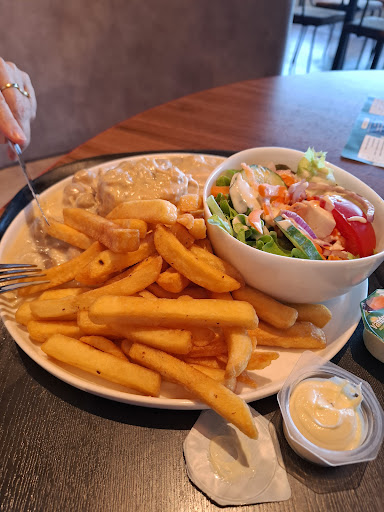 Read moreEven beginnen met het positieve nieuws: gratis toiletten aan een shoppingzone, die bovendien nog proper zijn ook, dat verdient positief onthaald te worden. Voor de rest viel 'Maneblusser City' brasserie best tegen. We waren er op een rustige vrijdag. Bestellen bij binnenkomst aan de bar. Geen 'goeiemiddag' of 'wat had u gewenst'. Gewoon staren tot ik bestelde. Een stevige 6,6€ voor een cappuccino en een cola, en die was niet eens koud, helaas. Je moet zelf je plateau met leeggoed wegzetten, maar voor de prijzen die hier gerekend worden, mocht er toch iets meer service inbegrepen zijn. Eten deden we niet, heb ik dus ook niet beoordeeld. Eindigen met een positieve noot: de brasserie was zeker niet ongezellig, en de tafeltjes...