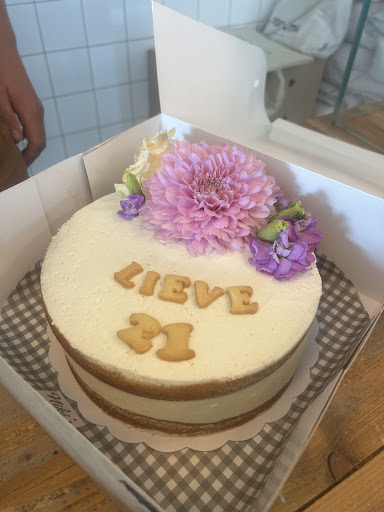 Ik had een klein stukje gekocht om te proeven dezelfde dag dat ik deze cake besteld had. En deze was echt super droog. Omdat het het laatste stukje was in de winkel dacht ik dat het misschien daardoor zou komen. Maar bij het afhalen van de chocolade cake, die we later die avond hebben gegeten met de familie viel hij ook droog in de mond. Dit vind ik heel spijtig, want jullie concept is leuk alleen deze taarten/cakes zijn zwaar en droog.