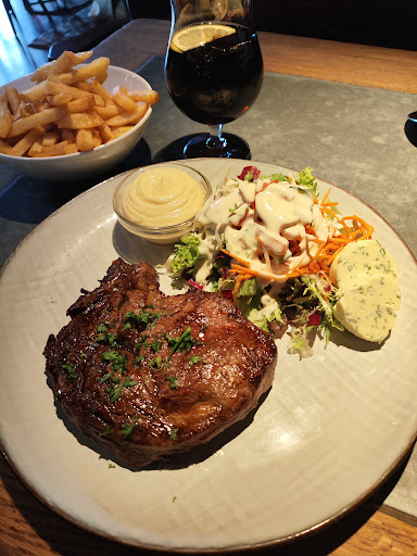 Read moreVorige zaterdag gaan eten. Vroeger heel vaak geweest en nu, na enkele jaren nog eens teruggekomen. We waren met vier personen. Er was al iets misgelopen bij de reservatie want ze hadden maar een tafel voor twee voorzien. Dit was gelukkig snel opgelost. Het eten: De ribbetjes met looksaus: veel te veel vet aan de ribben, flauw afgekruid en redelijk licht gebakken. De looksaus was vroeger ook beter. Over de bijhorende aardappelen geen klachten. Het slaatje was vroeger ook beter. De vol-au-vent: lekker maar te weinig. Zalm in bearnaisesaus: zalm ça va maar de saus leek meer op pudding, je kon er je mes in rechtzetten. De bijhorende kroketten... Veel te weinig (3 stuks?). Steak friet: van uitzicht oké, als je er in bijt: taai. Maar echt TAAI. :-) Bediening oké en correct, niet veel op aan te merken. Wel eens moeten vragen waar onze drank bleef. Al bij al toch een fijne avond gehad. Hopelijk was dit een éénmalige misser en leren ze...