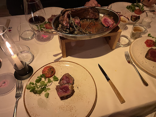 Lors de la commande, nous avons choisi un filet pur, pour lequel le serveur nous a uniquement demandĂ© la cuisson (saignant, Ă point, bien cuit), sans mentionner quâil existait trois versions Ă des prix diffĂ©rents. Nous avons reçu un filet pur correct, mais rien dâexceptionnel : Ă aucun moment nous ne nous sommes dit que la viande Ă©tait particuliĂšrement spĂ©ciale ou raffinĂ©e. Pour nous, câĂ©tait un filet pur classique.