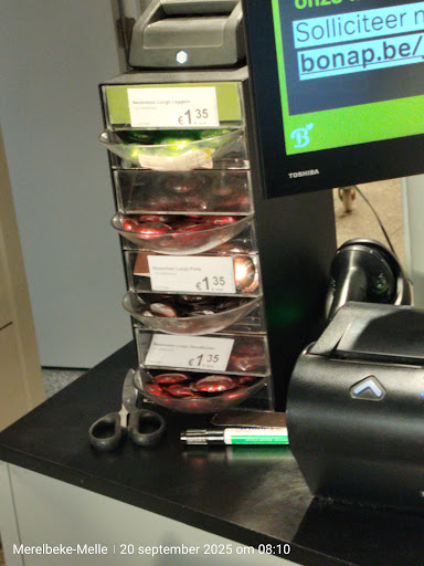 Maar ik bestel nooit meer online bij Merelbeke Bon'Ap want telkens is de helft van de bestelling er niet bij. We hebben nu reeds 2x online besteld en reeds 2x dezelfde ervaring. Het is niet fijn als je thuis vaststelt dat de hapjes, scampi, ... er niet bij zijn en je weer naar de winkel moet rijden om inkopen te gaan doen. Als je online bestelt dan ga je ervan uit dat je alles meekrijgt en is dit niet zo is het fijn als ze dit laten weten, dan kan je eventueel nog iets anders in de winkel kopen waar je op dat moment dan toch bent.