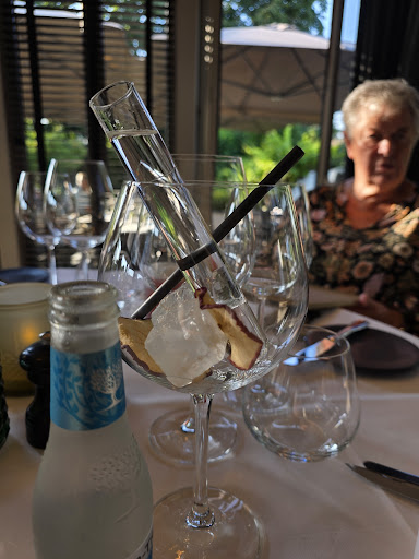 Read moreonthaal : zeer goed en vriendelijk, ook bij het naar buiten gaan, "marktmenu" genomen : zeer lekker, zeer mooi gepresenteerd (een aanrader), de aangepaste wijnen waren lekker (1X geschonken witte wijn en 1,5 X rode wijn, voor ons was het ietsje te weinig), we vroegen als aperitief 'cava' en we kregen 'champagne' (13 euro het glas), jammer dat de dame niet meedeelde dat het champagne was en geen cava, ook nergens gevonden op een ev. kaart (een minpunt), alsook de koffie (6 euro) en een glas wijn apart (7,50 euro), de prijzen zijn "nergens" te vinden op een kaart, wordt ook niet meegedeeld aan tafel, een goede bediening, maar weinig contact en duidelijke informatie, enkel bij het inzetten van de borden kregen we een uitleg van het gerecht, onze bedenking : een uitstekende keuken, onthaal ZG (binnenkomen en bij het weggaan), maar tijdens de maaltijd weinig of geen interactie : bediening dame en klant, niet vergeten dat is superbelangrijk, de chef in de keuken doet super zijn best, en het verlengde ervan (de zaal) moet minsten...