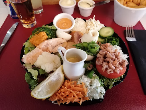 Β Β Β Read moreWij waren al paar x voorbij gereden en nu hadden we eindelijk eens gereserveert. We waren verplicht om in het overdekt terras te zitten. Wat koud en killig was. We hadden ook het gevoel dat we in de vergeethoek zaten. Totaal niet gezellig. Mijn man vroeg de ribeye medium gebakken met de pepersaus. Zijn vlees was zo goed of uitgebakken (taai en droog) en de pepersaus was blijkbaar champignonsais. Mijn dochter vroeg plat water en kreeg spuit, zij vroeg de volauvent en de kip was droog zij is gewoon gestopt met eten. Ik zelf heb de deense kabeljauwrug gebakken gegeten met mousseline saus en pattanstampers, denk dat de patatten iets te lang gestampt geweest zijn want die waren droog. Dit zou onze laatste gezellige avond moeten geweest zijn als afsluiter van onze conge maar zoals met alles is dit ook in water gevallen. Toen ik ging betalen wat binnen moet voel je zo dat je in een andere sfeer terecht komt warm en gezellig. Zelfs de muziek is anders binnen. Het jonge personeel is vriendelijk de oudere net iets minder. Al bij al is dit geen aangename ervaring geweest. Ons zien ze alvast...