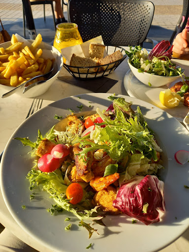 Read moreEerste keer langs geweest. Super vriendelijke dame die kwam opnemen, echt met een gemeende glimlach. Mevrouw kwam ook vragen of alles naar wens was. Dergelijke bediening vind je niet veel meer. Dikke duim voor de dame. We zaten op het terras. Buiten het zicht op zee , niet echt gezellig. Kleine ronde tafels met 4 stoelen aan...goed om met twee te eten, maar te klein met 4. We hebben mensen toeren zien uithalen. Drank en mosselpot moesten op de grond. Beter vierkante tafels die je bijeen kan schuiven. Niet ideaal om gezellig te eten. Mensen komen met groep kids van het strand om te eten. Lawaaimakers.. Restaurant is goed voor jonge mensen met kids. Niet ideaal om met twee een gezellige avond te genieten. Op de menukaart 3 salades , waarvan 2 met warme curry saus.. past niet echt. Beter een goede vinegraitte. Ook de salades bij de andere gerechten mag met iets meer met dressing geserveerd worden. Op foto salade kip-scampi met warme currysaus en 2 garnaalkroketten met salade en frietjes....