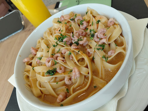 Dit etentje was er eentje dat ons (als gezin) achterliet met een gemengd gevoel, het eten op zich was niet goed te noemen. Natuurlijk moeten we er ook bij nemen dat het hier om een brasserie gaat en niet om een heus restaurant. Mijn vrouw had scampi's in kreeftroomsaus genomen. De smaak van kreeftsaus(ook niks gekruid) was ver te zoeken en de scampi's waren met de saus mee gekookt/opgewarmd want gebakken waren ze niet. Mijn kabeljauw op een bedje van prei kon ook beter zijn. De curry saus waar de prei (deze gaf eigenlijk de smaak aan het gerecht) in zat was buiten dat de curry het enige was dat je kon proeven want hier waren ze ook het zout en andere kruiden vergeten. Spijtig genoeg was de kabeljauw ook mee opgewarmd met de schotel zelf en nadien was er flauwe tagliatelle op gelegd. Het zou al veel gedaan hebben moest de kabeljauw gebakken zijn geweest op het moment van serveren. Mijn kinderen vonden hun pasta (die naar mijn mening niet huisgemaakt was en uit een bokaal kwam) en lasagne goed. Maar niet alles was/is kommer en kwel. Toen we ons ongenoegen mee deelden aan de uitbater was deze even geheel uit zijn veld geslagen en dit was zeer zeker niet in scène gezet, de uitbater was hier zelfs van aangedaan. Onze eerlijkheid werd ter harte genomen en hier zal waarschijnlijk ook wel iets met gedaan worden. Er is ook een mooie bier-/drankenkaart aanwezig en de prijzen zijn gemiddeld tot goedkoper te noemen. Wij zullen hier na een tijdje nog eens terugkomen en als het eten beter is krijgen...