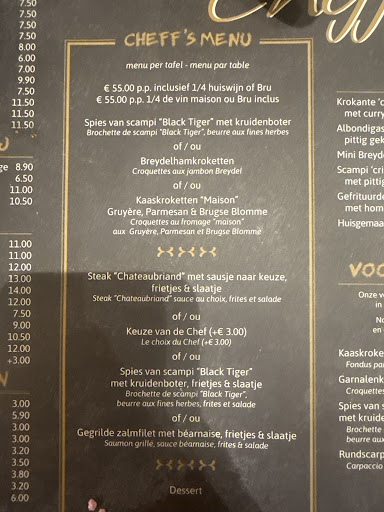 De hoofdgerechten volgen zeer snel op de voorgerechten en daar loopt het fout. We bestelden allen steak bleu gebakken. We kregen echter op 2 borden eerder een a point en geven dit door aan de zaal. Zij brengen de borden terug naar de keuken. Tot onze verbazing komt de chef ONBESCHOFT aangelopen dat het op randje van saignant was en zei hij dat we zeker nog 20 minuten konden wachten op een nieuw bord. ABSURD! 2e bord dat uiteindelijk effectief zo lang duurde om te krijgen was eigenlijk niet veel beter. We hebben geen idee hoe deze steaks gebakken worden….