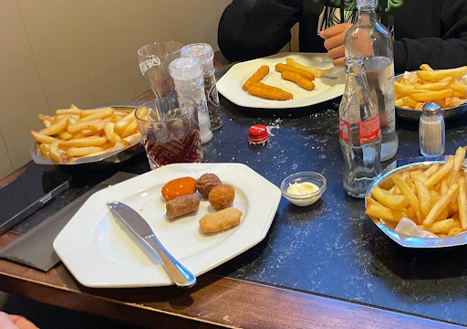 Read moreIn deze zaak doen ze aan restjes verwerken want een pot (zanderige) mosselen van 30 euro serveren ze hier met de schillen van de wortels en scampi staarten. Toen ik die laatste vond, had ik meteen gedaan met eten. Gelukkig misschien want mijn echtgenoot heeft de hele nacht buikpijn gehad. Bij de bestelling liep ook al alles in het 100. Zo erg zelfs dat ze een kom frietjes waar mijn dochtertje al aan begonnen was, aan een ander tafeltje gingen geven. Tof bruin café en heel vriendelijke bediening, maar hier loopt het 1 en ander...