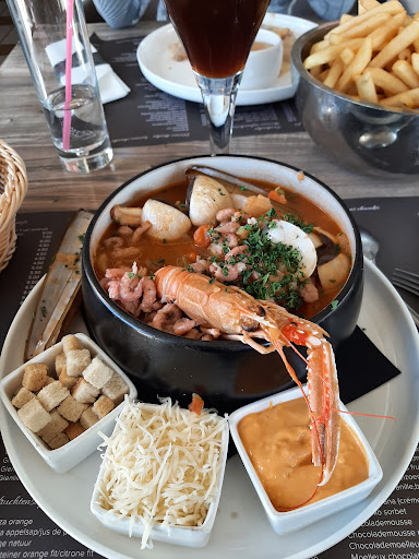 Ce jour, j'ai testé la royale vissoup (soupe de poisson royale). Une soupe bien assaisonnée, fournie en légumes, de beaux morceaux de poissons accompagnés de mollusques divers et une garniture royale de crevettes grises par dessus ! Cette soupe est servie avec des croûtons et de la rouille. Un vrai régal ! Je recommande vivement pour les amateurs.