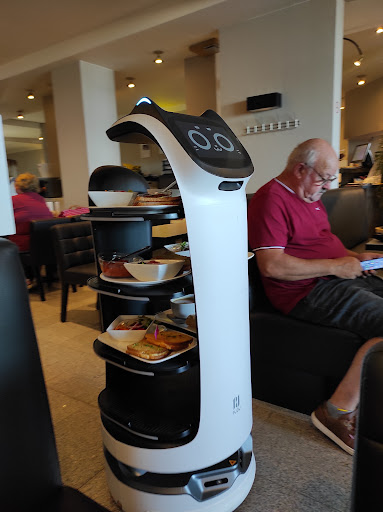Gisteren zochten we naar een brasserie waar we heerlijke pannekoeken/wafels konden eten. We kwamen bij deze uit. Terras zat goed vol en ook binnen was het heel druk. Bediening liep moeizaam. 1 jongeman was fantastisch vriendelijk. Elke keer er iemand voorbij wandelde daverde de glazen op onze tafel, niet zo leuk. Pannenkoek met ijs, banaan en advocaat = Heerlijk! Lang geleden dat ik zo'n deftige pannenkoeken heb gegeten. Wafels met aardbeien, ijs en slagroom = Ruime portie, super lekker. Het begon te regenen, dus naar binnen gevlucht, ja daar zat het vol. Veel mensen van het terras waren enkel aan het drinken dus ik kreeg van de jongeman een tafel zodat ik verder kon eten. Aanrader als je pannenkoeken/wafels wilt eten. Het zicht van de zee wordt wel belemmerd door het puin van de bouw van het casino, maar ja daar kan de uitbater...