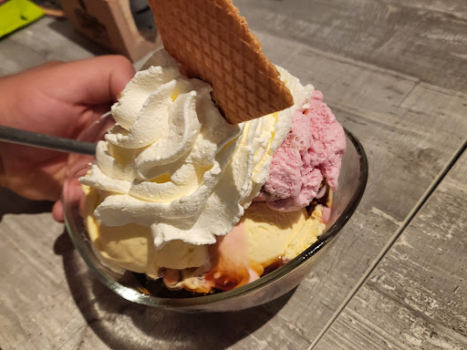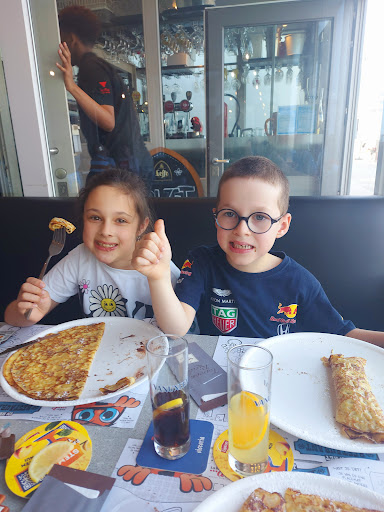 Mijn Nederlands is niet goed, maar ik ga mijn best doen, vandaag waren wij een groep van 10 mensen, de service was echt goed, zij zijn een paar kieren gekomen voor te vragen als hadden wij nog iets nodig, als alles in orde was... en ik vind dat echt leuk. De pannenkoeken waren echt lekker, surtout de pannekoek met kinderbueno, en coupe Napoli, echt prachtig. Zeker ik ga nog...