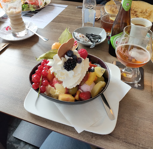 Read moreVandaag na een lange wandeling dit terras uitgekozen, onze wafel was heel lekker dus over het eten ga ik niet oordelen. Hier gaan ze aan ons nooit geen euro meer verdienen na wat we daar mee maakten. Er kwam een oud vrouwtje op het terras zitten, moeilijk te been en met rolator. Na lang wachten komt ik vermoed de bazin bij haar, het vrouwtje vraagt een fanta en krijgt als antwoord mevrouw je kan enkel met qr code bestellen en betalen op het terras...het oude vrouwtje hoort het donderen in Keulen en snapt het allemaal niet. De bazin zegt hebt u geen telef terwijl het vrouwtje blijft zwaaien met haar bankkaart..nee enkel qr code en ze laat mevrouw zitten...ze zegt wel nog u moet binnen gaan! Ik kon dit niet aanzien dus ik ga bij het vrouwtje en zeg mevrouw ik zal u een fanta halen. Na enige aarzeling geeft ze haar kaart aan mij en ik ga naar binnen. Vraag aan de toog een fanta....nee dit gaat niet! Echt waar dit heb ik nog van mijn leven niet meegemaakt...dus vraag ik ik mag geen fanta hier bestellen en meenemen naar buiten? Ondertussen kwam een andere medewerker die wel vriendelijk was en zij wou me helpen maar de bazin stond achter haar...nee dit mag niet, ze moet maar binnenkomen...ze wou haar nog zeggen maar ale mevrouw is met een rolator..nee geen excuus. Ik ben naar buiten gegaan en heb mevrouw een fanta besteld en betaald...ze was zo blij. Wat een kranige dame ze bleek 94 te zijn. Wel schaam jullie maar heel diep!!! Hoe klantonvriendelijk kan je zijn!!! Iedereen die er zat was verbouwereerd. Wij zagen veel ouderen sukkelen met het systeem dat ze hier hanteren. Mijn man vroeg nog aan een ober die drank kwam brengen waarom kan mevrouw niet betalen terwijl uw bancontact bakje aan uw schort hangt? Die jongen kon er ook niet aan doen en zat er ook mee in...ik mag niet was...