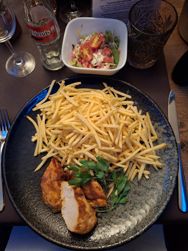 Zeer gezellige zaak, waar je toch voldoende ruimte hebt en geen opeengepakt gevoel krijgt. Erg vriendelijke bediening en zeer correct. We dronken eerst een aperitief en bestelden tegelijk ons eten maar vroegen om dit niet te snel te brengen zodat we rustig van onze apero konden genieten. Dit werd perfect gerespecteerd. Bij onze apero bovendien lekkere olijfjes en HEEERLIJK brood gekregen. Ons hoofdgerecht was bovendien TOP: perfect gegaard mals stukje vlees, heerlijke pepersaus die perfect op smaak was en een mooie berg steppegras, begeleid door een lekker slaatje waar ook werk van gemaakt was: fijn gesneden met een lekkere saus en verse kruiden. Dit alles samen met een heerlijke wijn gekozen uit de zeer uitgebreide wijnkaart. Hier vindt echt iedereen zijn gading! Super tevreden klant die ZEKER...